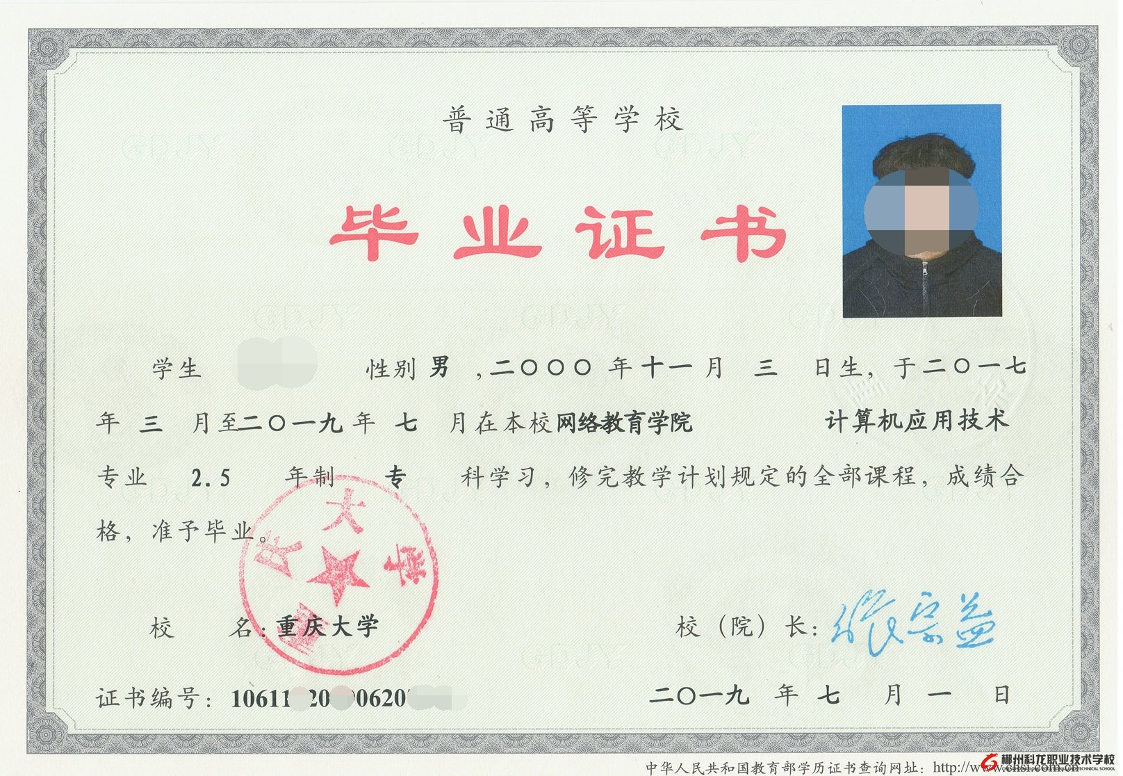 2019年重庆大学网络教育大专毕业(2017年3月报名入学)的同学即日起请到校领取毕业证书