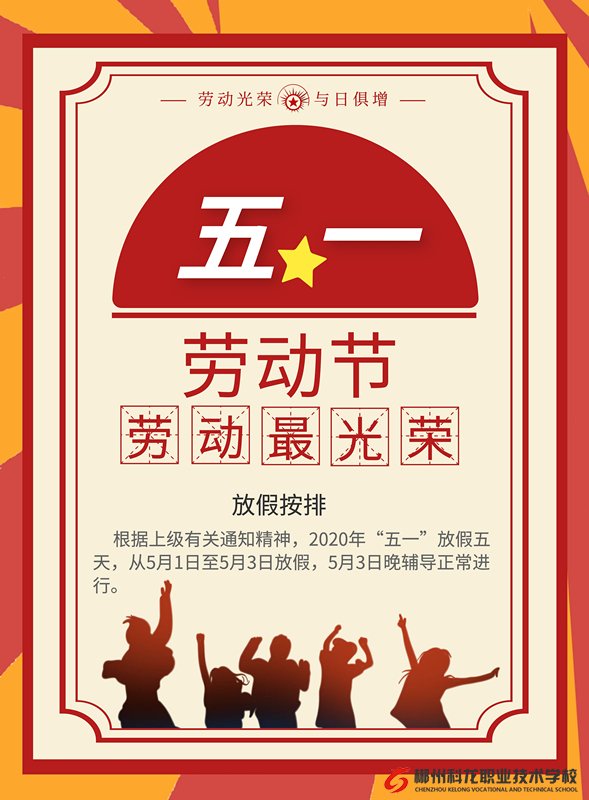 根据上级有关通知精神,2020年“五一”放假3天,从5月1日至5月3日放假,5月3日晚辅导正常进行。为了使您的子女平平安安渡过一个愉快的假期,请你们在假期期间配合我校对该子女做好疫情防控、食品、溺水、消防、交通、法律法规等安全教育: