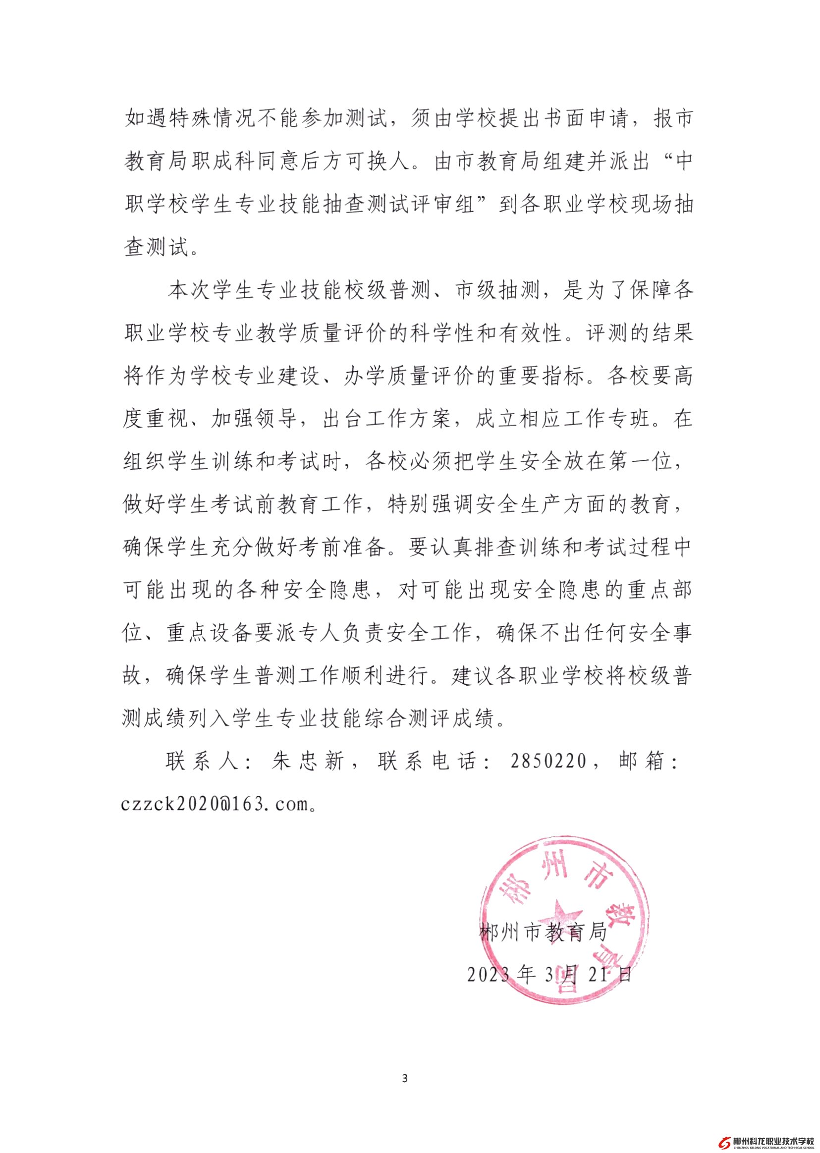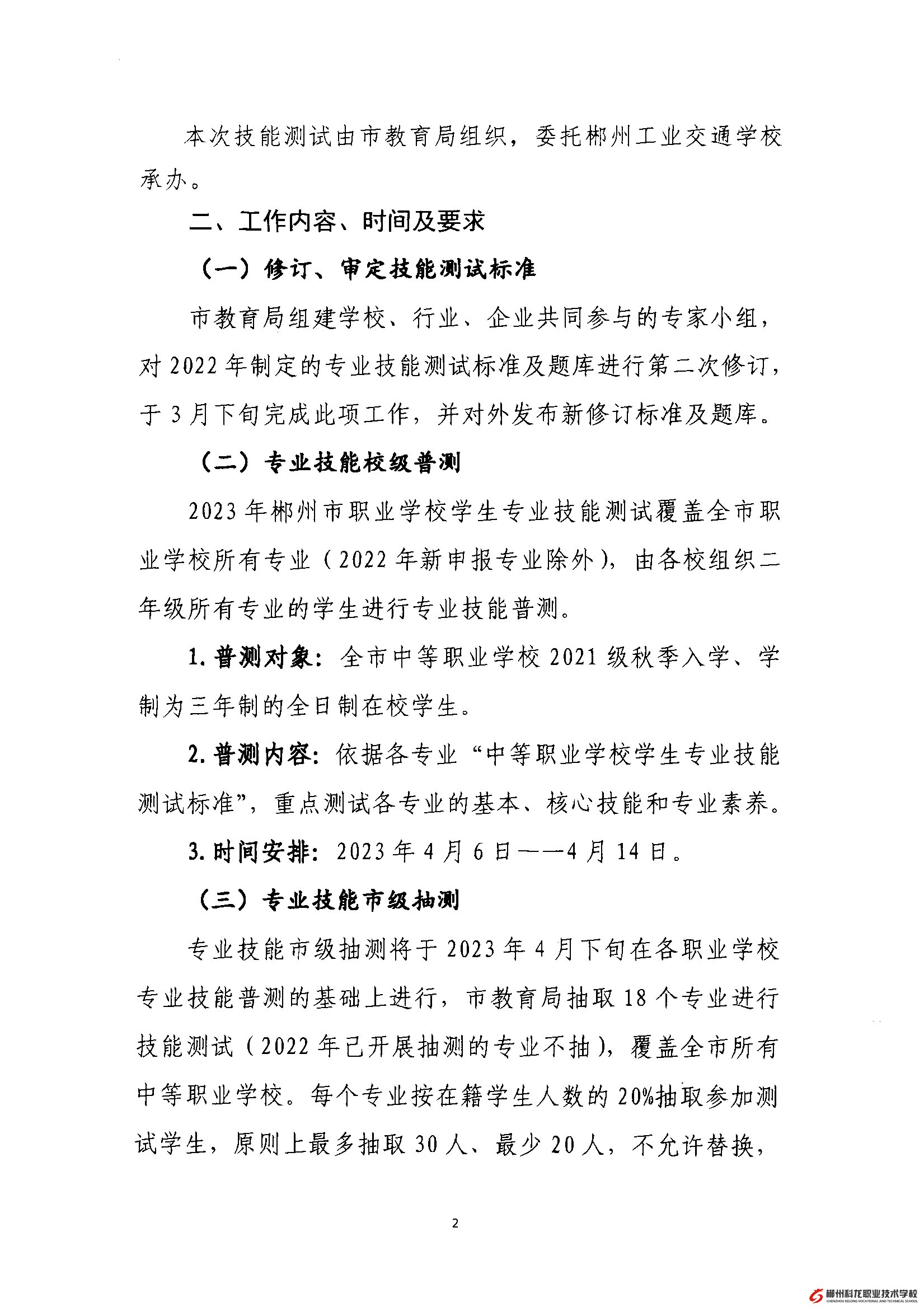 关于开展郴州市中等职业学校学生专业技能校级普测、市级抽测工作的通知