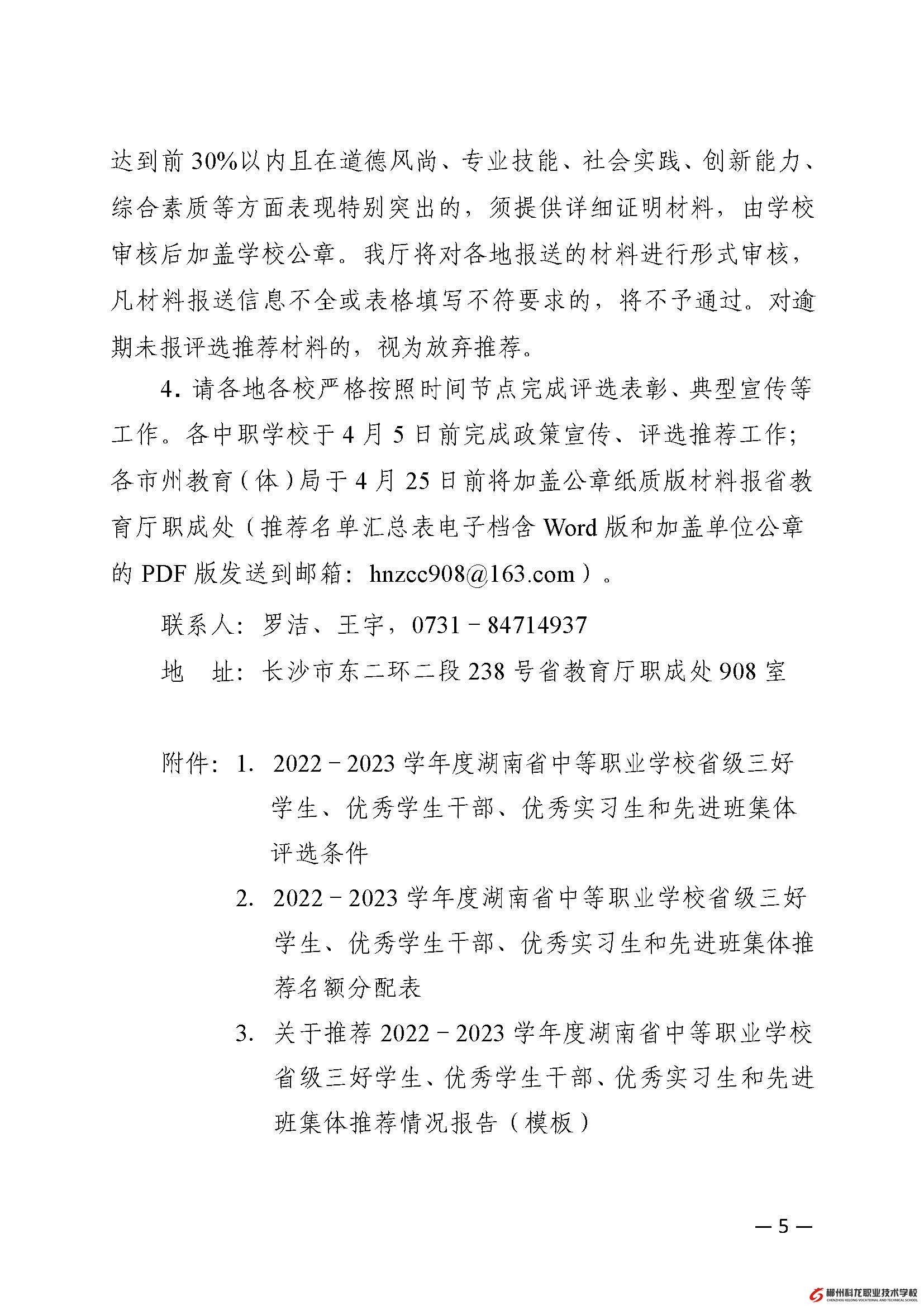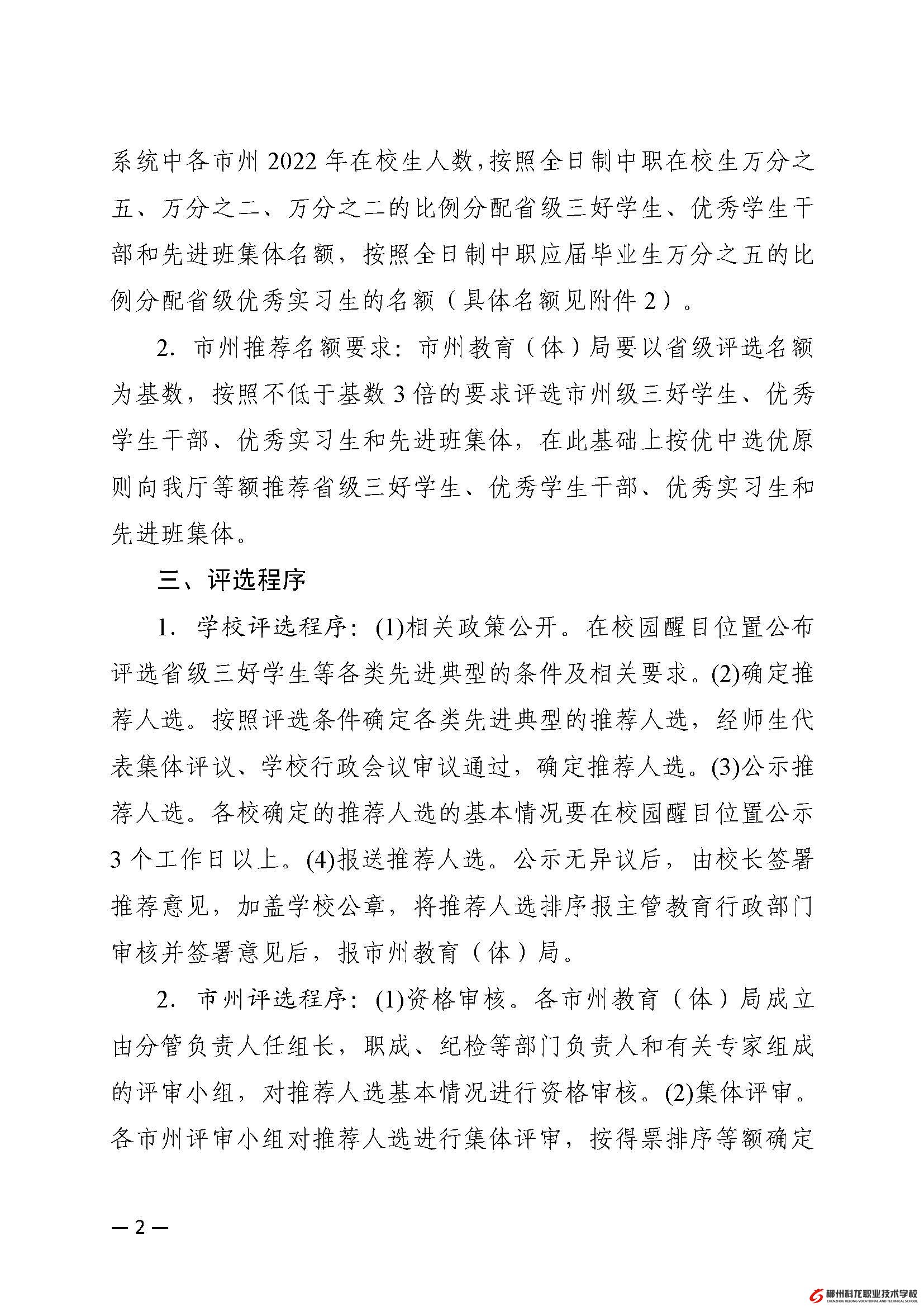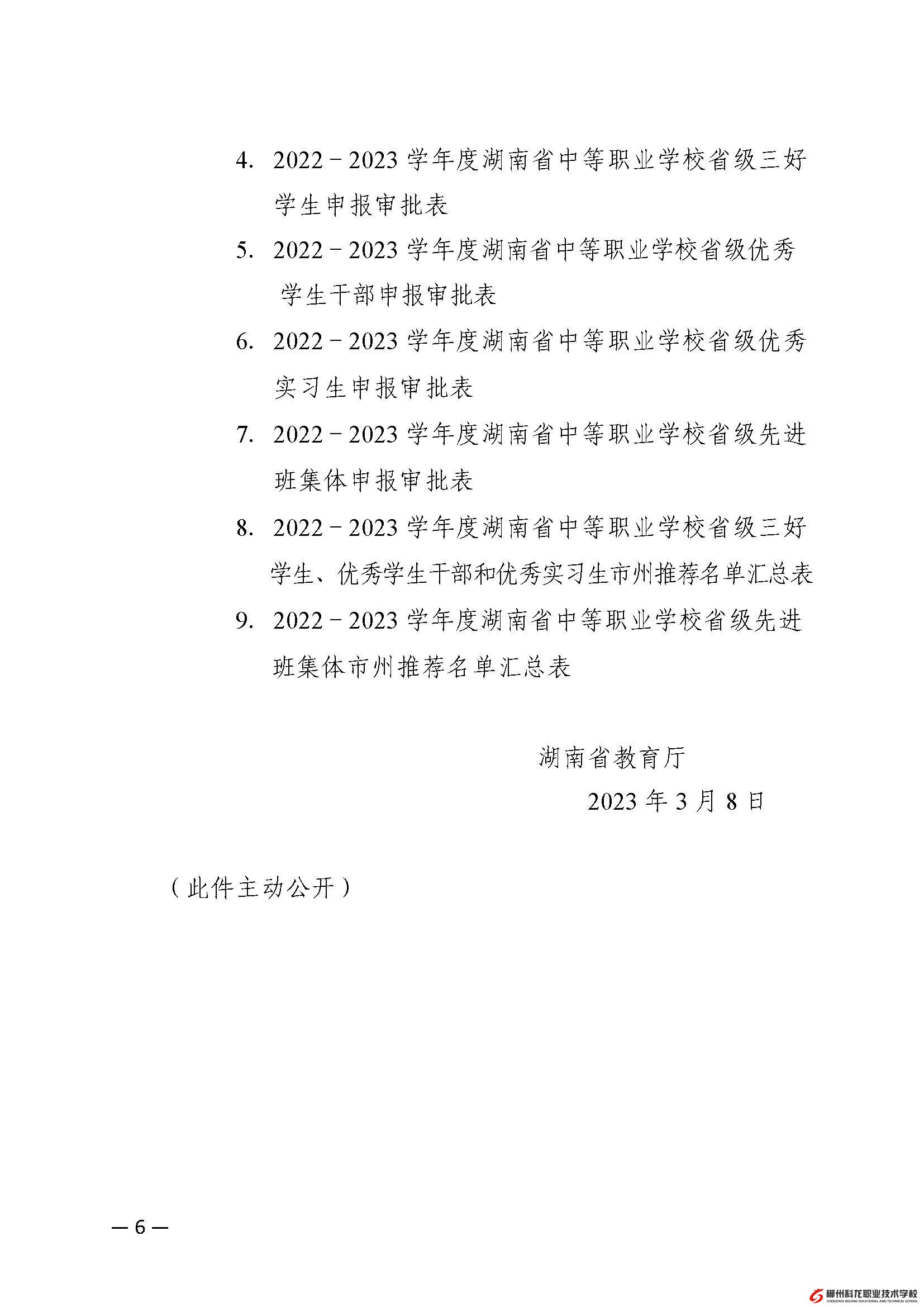 湘教通[2023]56号 关于评选2022-2023学年度湖南省中等职业学校省级三好学生、优秀学生干部、优秀实习生和先进班集体的通知